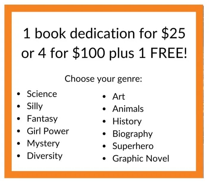 Every time a child reads your book, they will know that someone cares about them enough to donate a book just for their library!