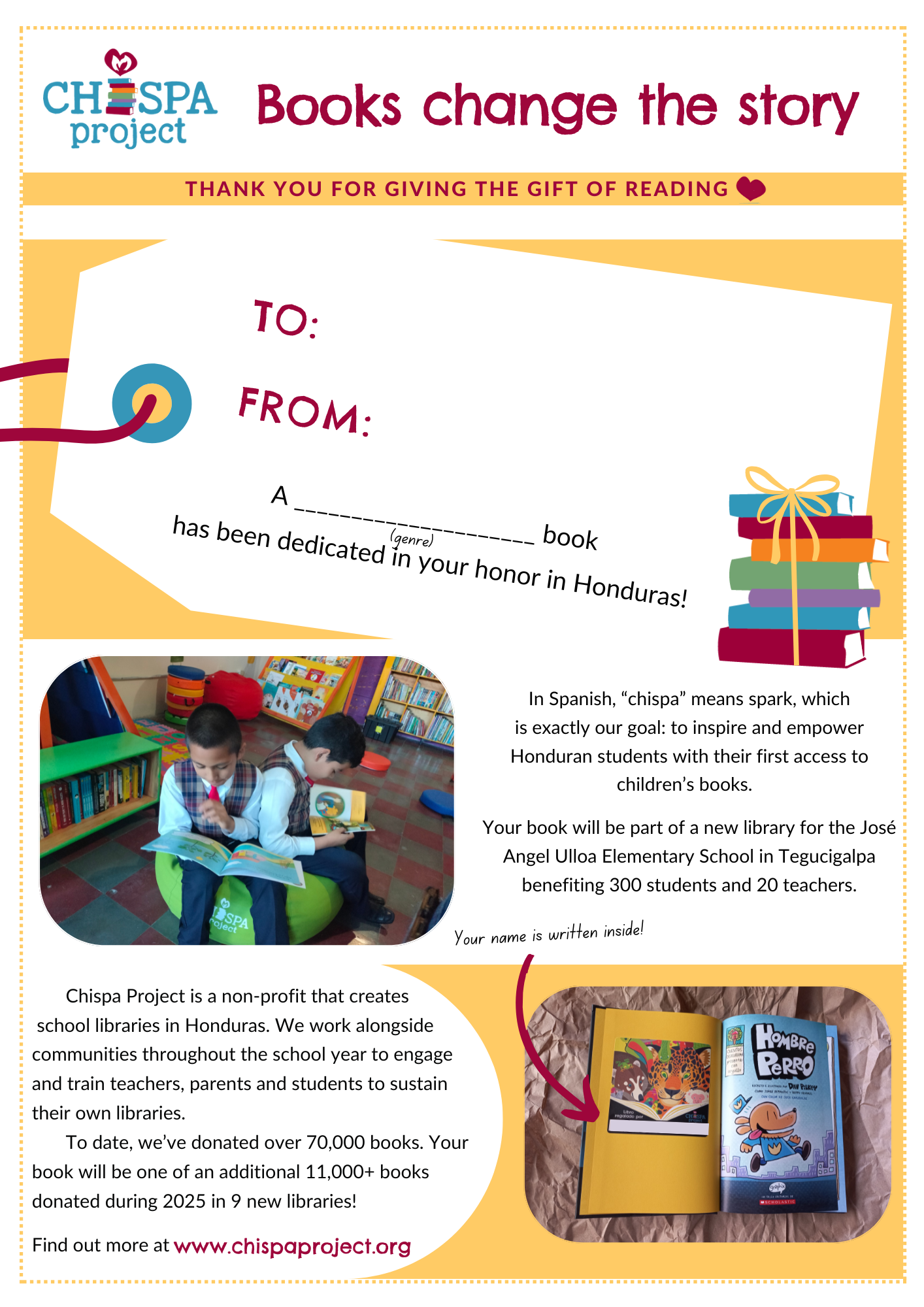 You can now download your certificate. Print one for each recipient and write in which genre of book you chose for them.